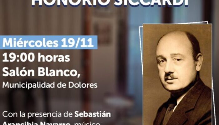 onversatorio con Sebastián Arancibia Navarro: “Honorio Siccardi. Su obra y legado en el siglo XXI” El encuentro se realizará en el Salón Blanco Municipal este miércoles 19 de noviembre a las 19…