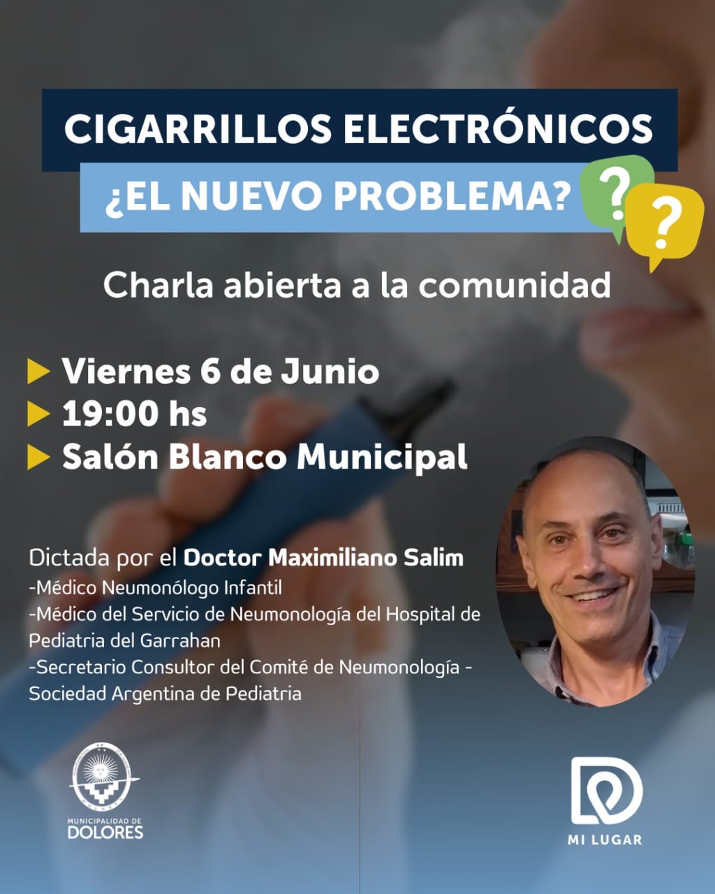 El viernes 6 de junio a las 19.00 hs, en el Salón Blanco Municipal, se llevará a cabo la charla abierta a la comunidad “Cigarrillos Electrónicos ¿El nuevo problema?”.