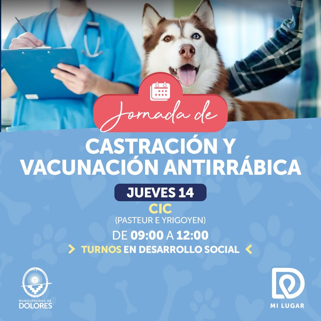 La Municipalidad de Dolores informa la nueva fecha de vacunación antirrábica y castraciones en los CAPS.