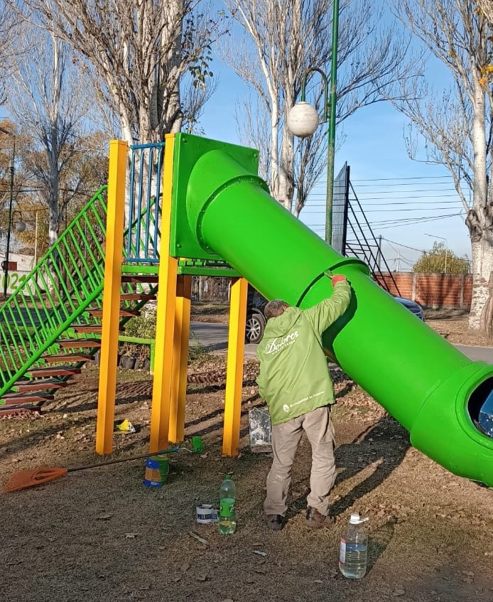 Se continúa con el pintado y reparación de juegos de diferentes espacios públicos, se realizaron tareas en Plazas Moreno y Belgrano. En el marco del Programa Dolores Ciudad Verde que lleva adelante el Intendente Camilo Etchevarren.