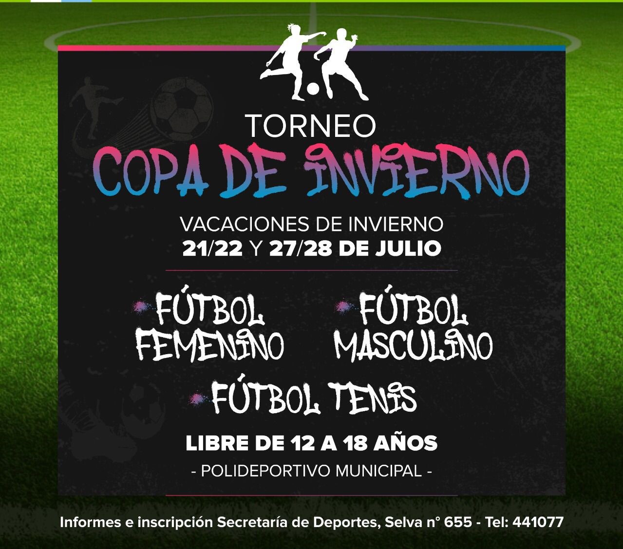 Desde la Secretaría de Deportes se informa que en las instalaciones del Polideportivo Municipal, se disputará durante las vacaciones el Torneo Copa de Invierno, durante los días 21, 22, 27 y 28 de julio.