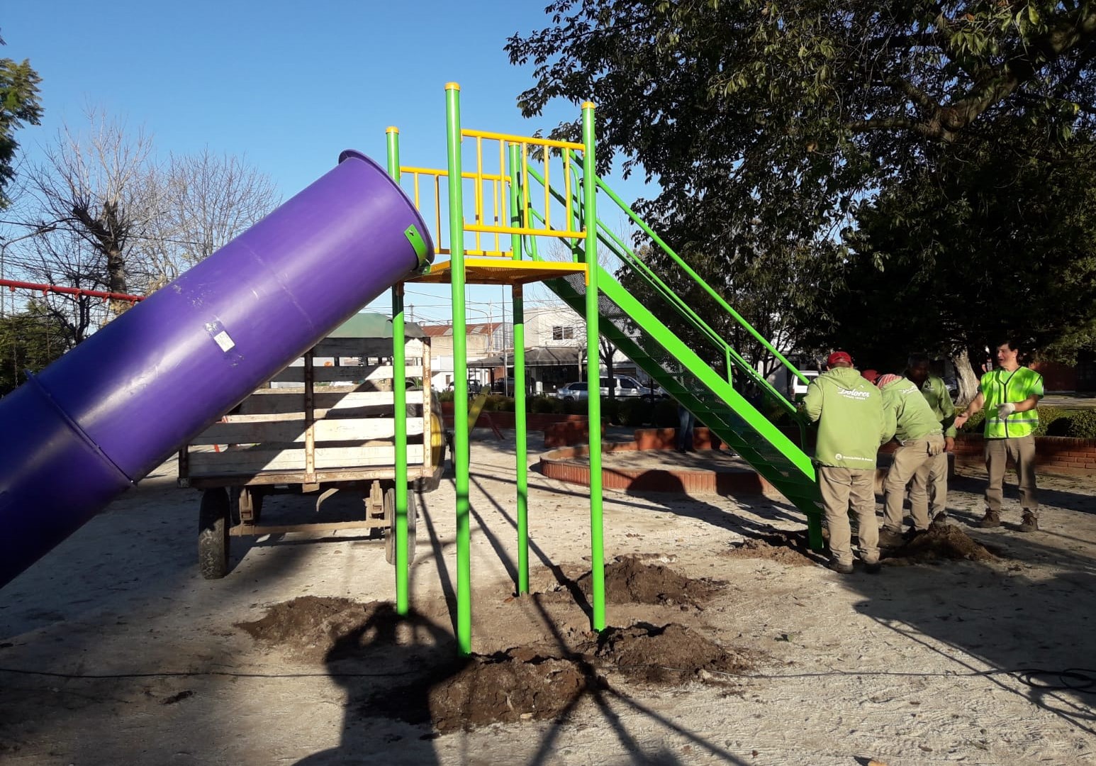 Continuando con las mejoras de los diferentes espacios públicos, se colocó un tobogán en la Plaza Moreno, que forma parte de las tareas de reacondicionamiento y esparcimiento que es muy utilizado por los niños.